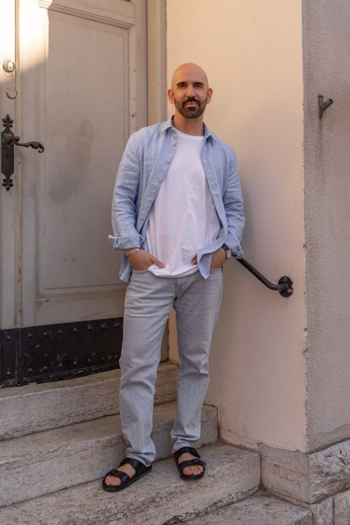 Ljusblå Linneskjorta för Herr – Stilren Gotländsk Design i 100% Linne