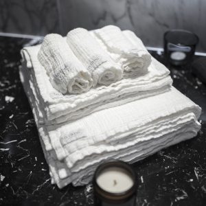 Det finns många anledningar till varför en ansiktshandduk i linne är så bra. En av alla anledningar är att linne absorberar vatten snabbt vilket gör att handduken torkar på nolltid. Den våfflade strukturen ger dessutom en lätt peelande känsla mot huden som lämpar sig perfekt in i din hudvårdsrutin. Beställ idag och njut av dina härliga ansiktshanddukar från oss!
