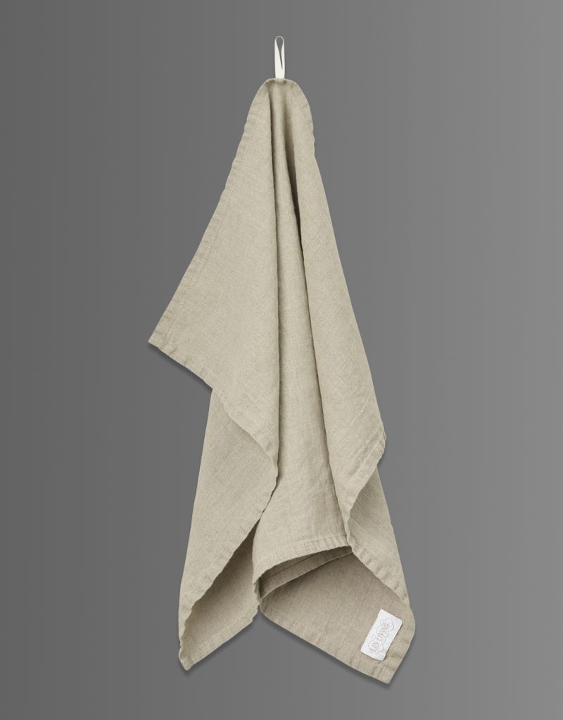 Färg: Nature (linets naturliga färg) Material: hundraprocentigt och ekologiskt odlat linnetyg. Ögla finns på handduken för smidig upphängning. Storlek: 50×70 cm