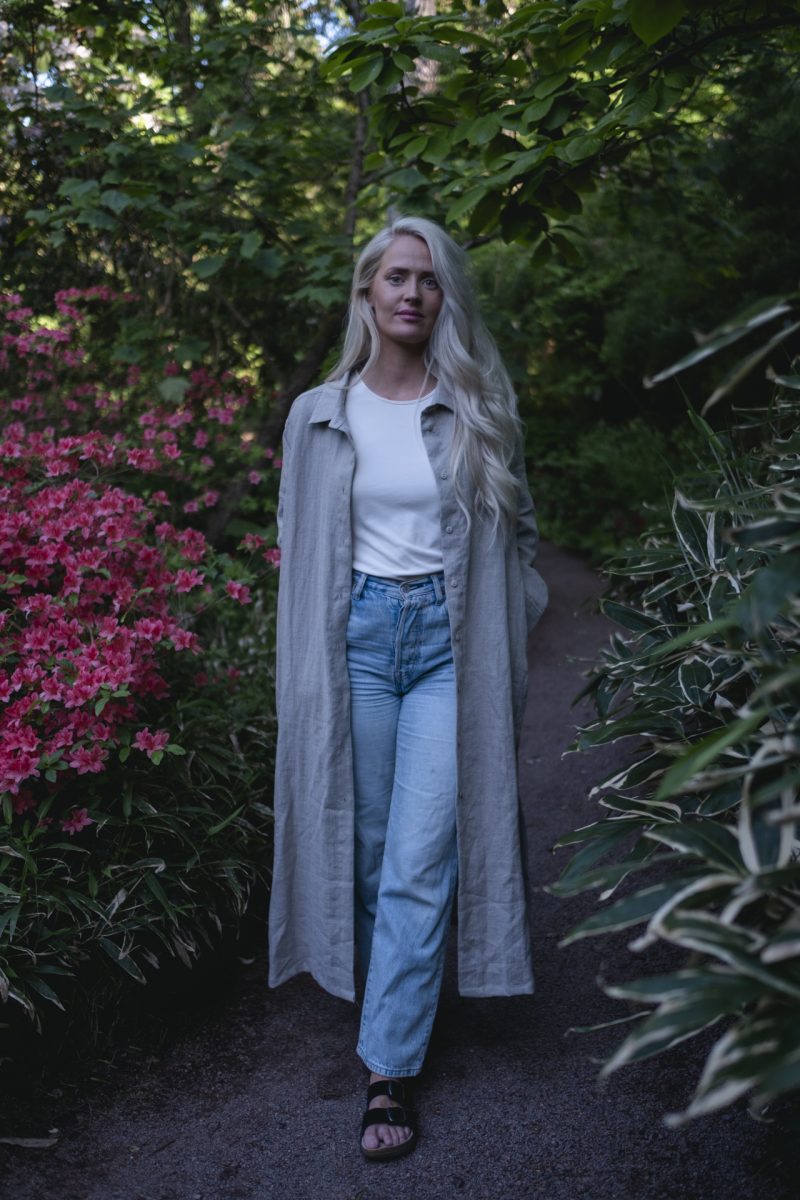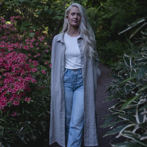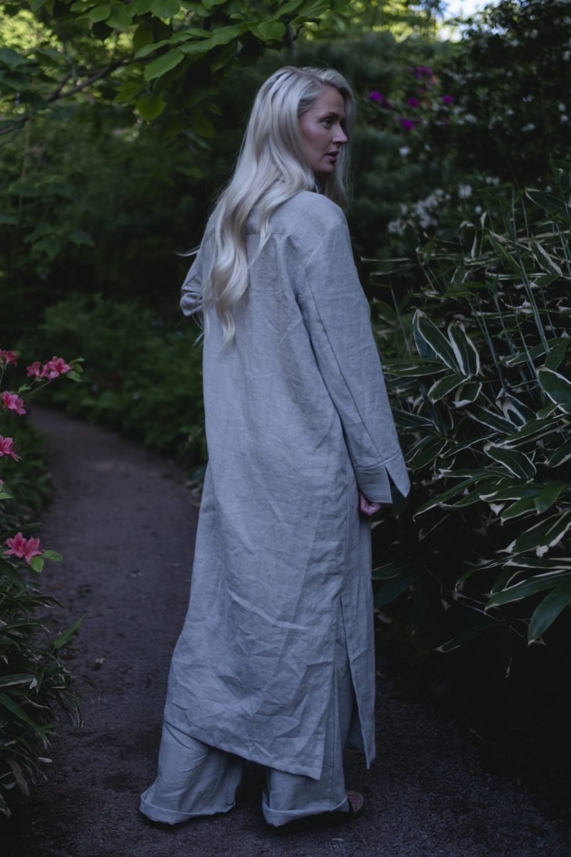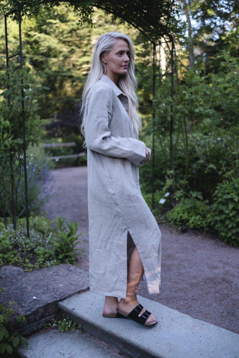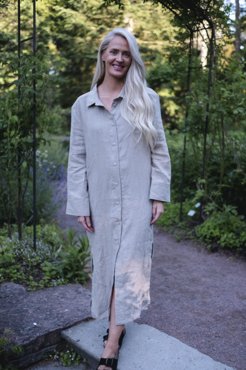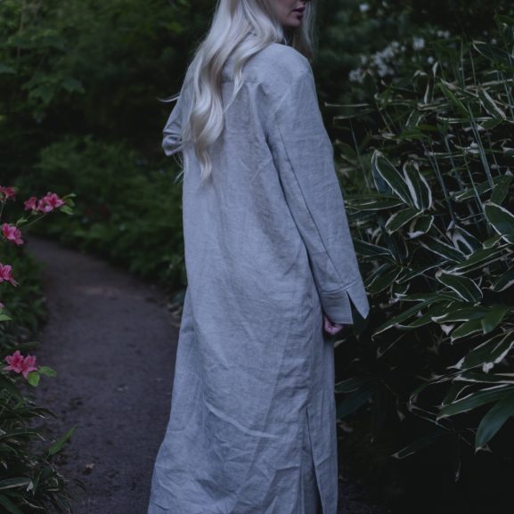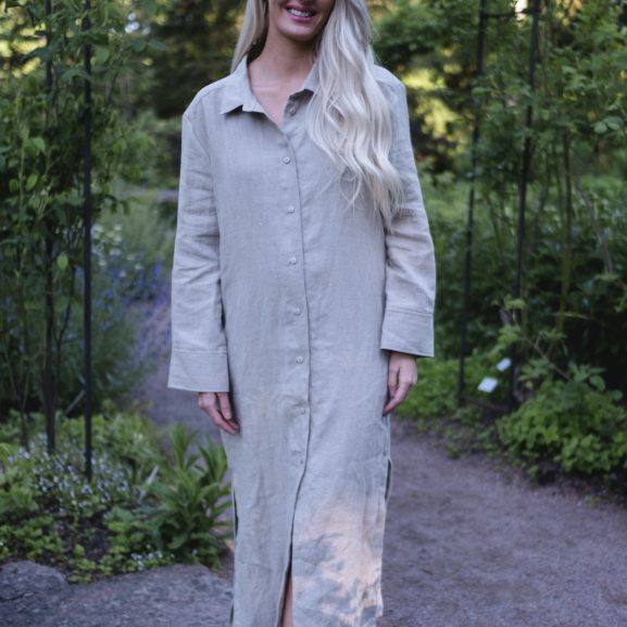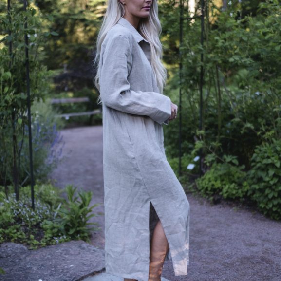 Här hittar du vår långskjorta i linne med knappar hela vägen fram. Vår förhoppning är att långskjortan ska kunna användas vid alla möjliga tillfällen eftersom den går att klä upp och ner. Styla som klänning eller som långskjorta över något annat.