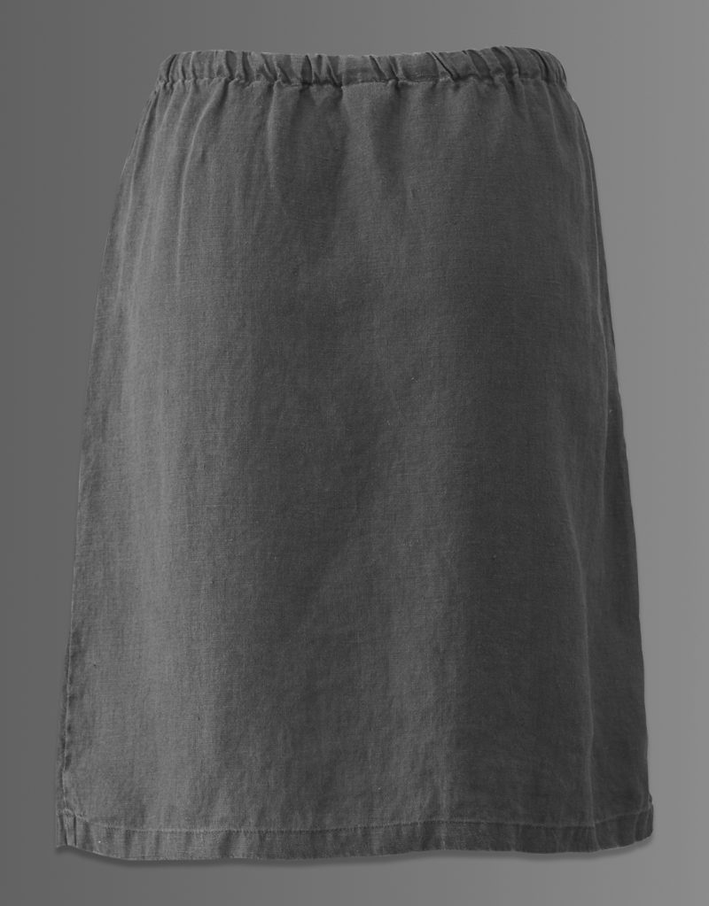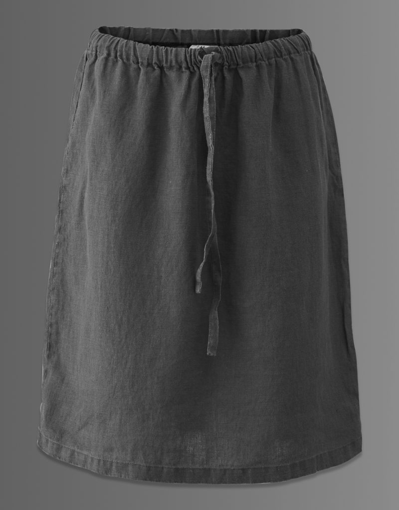 Stilren och bekväm linnekjol i mörkblå färg. Resår i midjan.