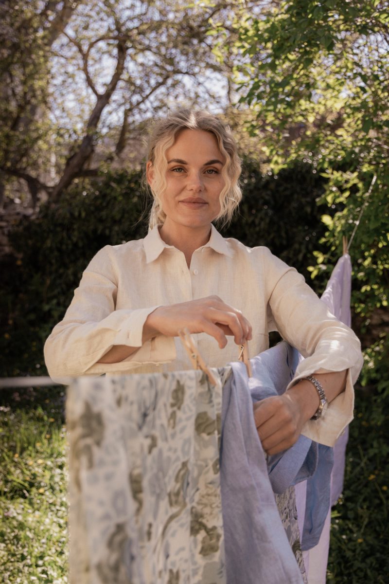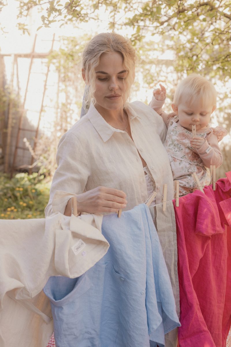 Här är Lin Livings egendesignade linneskjorta. Designen på denna skjorta togs fram år 2016 av grundaren Hanna Jörnhammar och har sedan dess blivit en riktig klassiker i vårt sortiment som bärs av människor i alla åldrar.