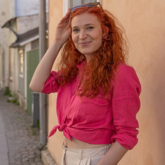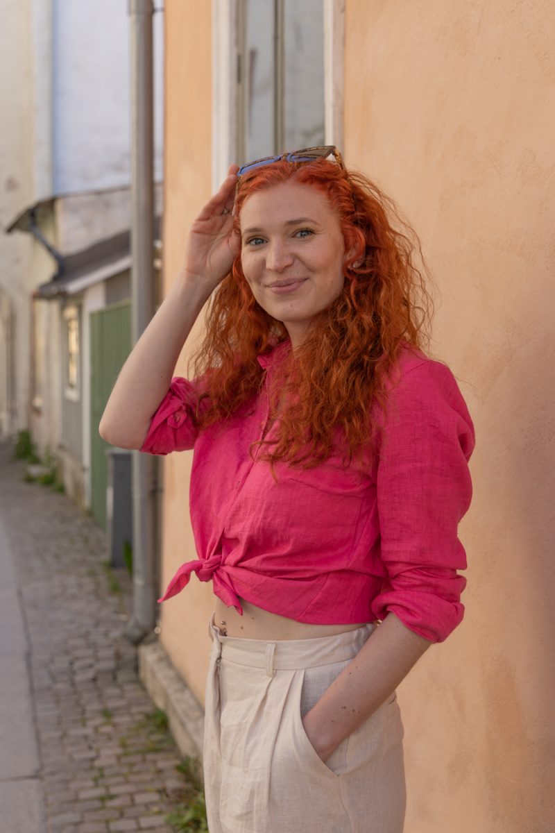 Lin Livings skjortor bär jag året om. Den rosa färgen är så snygg och får dig på gott humör.
