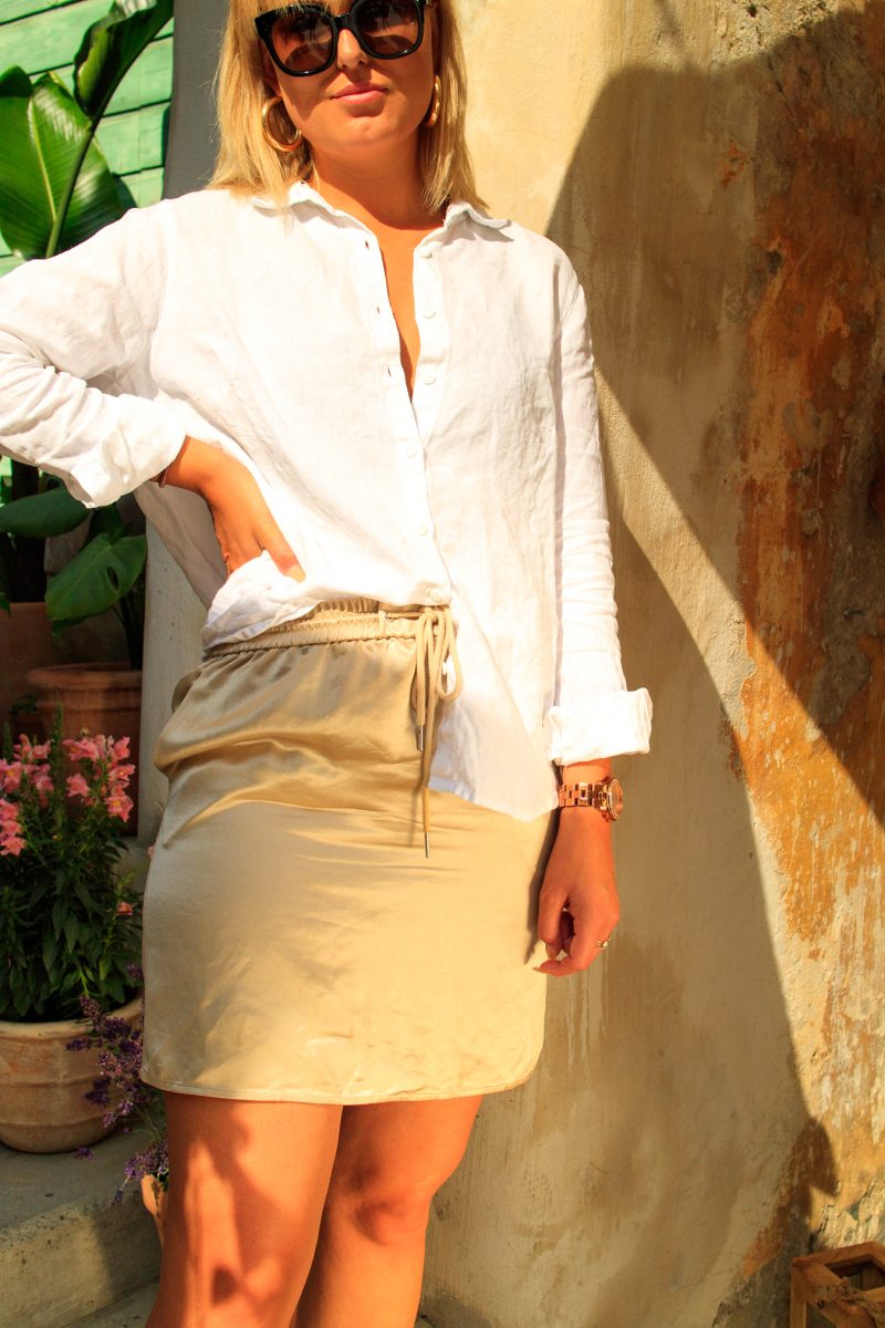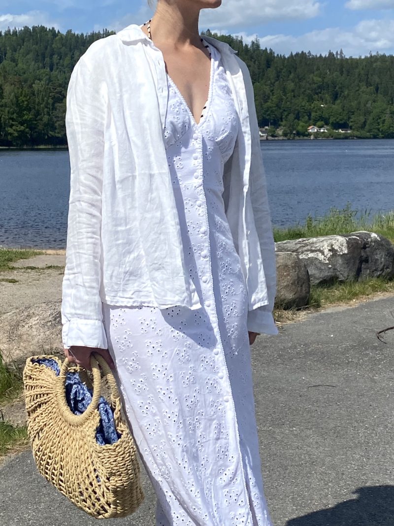 En helt fantastisk skjorta som fungerar i alla lägen! Så fin att ha både till en avslappnad outfit men lika snygg till något uppklätt. Det är få plagg jag har fått så många frågor och komplimanger om, alla tycker det är den perfekt vita skjortan. Materialet är helt fantastiskt och fungerar super även under de varmaste dagarna.