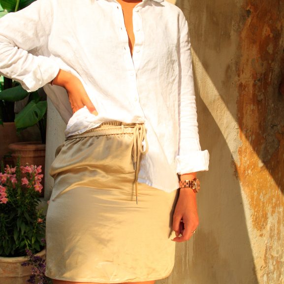 En linneskjorta som används ihärdigt året runt, under kavajen eller till stranden. Älskar kvaliteten och hållbarheten.