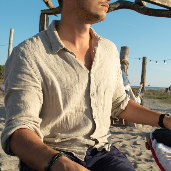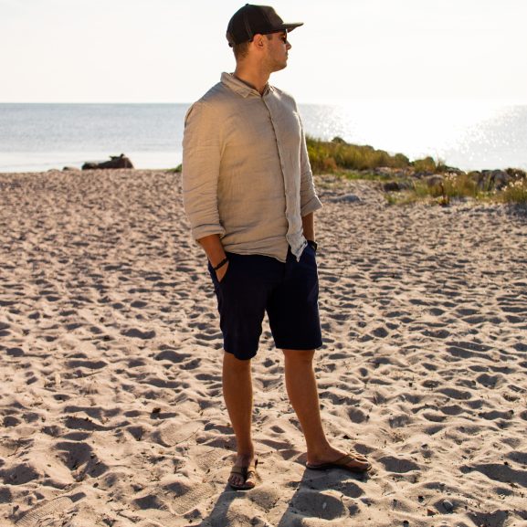 Den är gjord av ett hundraprocentigt och ekologiskt odlat linnetyg som även blivit tvättat. Våra linneskjortor är mjuka mot huden och blir bara skönare ju mer du använder dem. Vi har lagt mycket tid, eftertanke och kärlek på att skapa den perfekta linneskjortan som passar i alla möjliga sammanhang, alltifrån ett formellt affärsmöte till en varm dag på stranden.