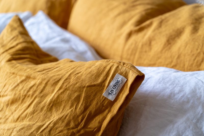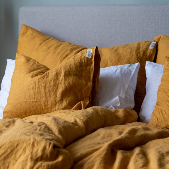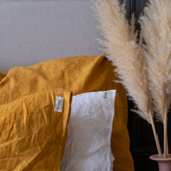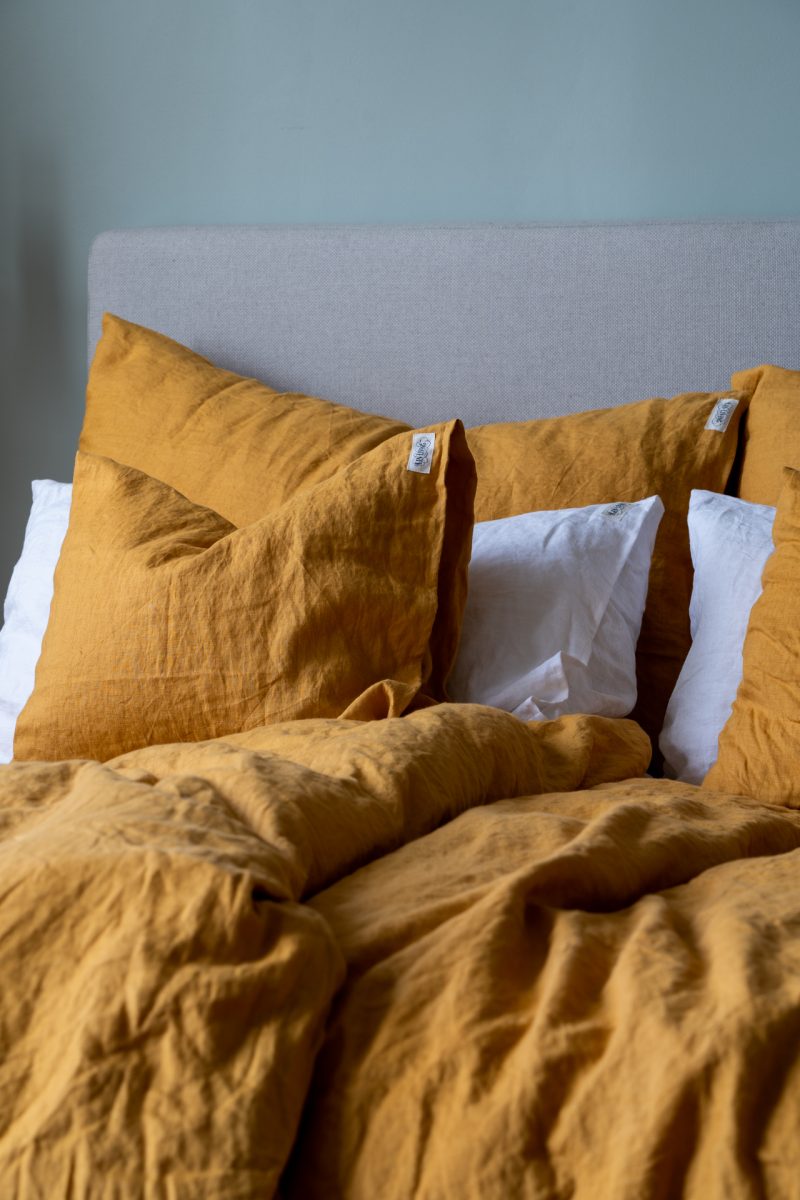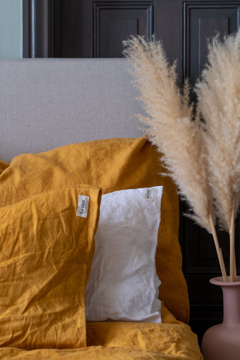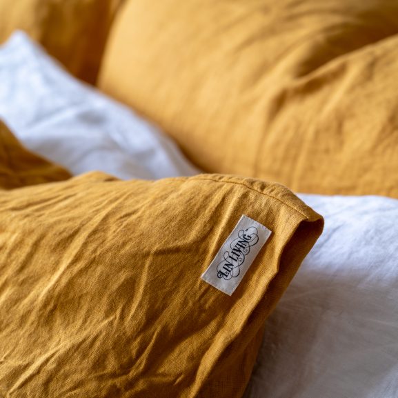 Unna dig ett mjukt och svalt linneörngott i vår avslappnande och vackra färg Sunflower.