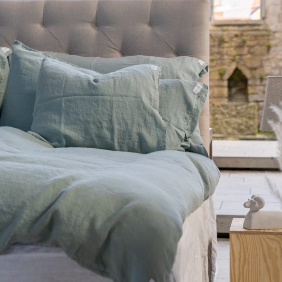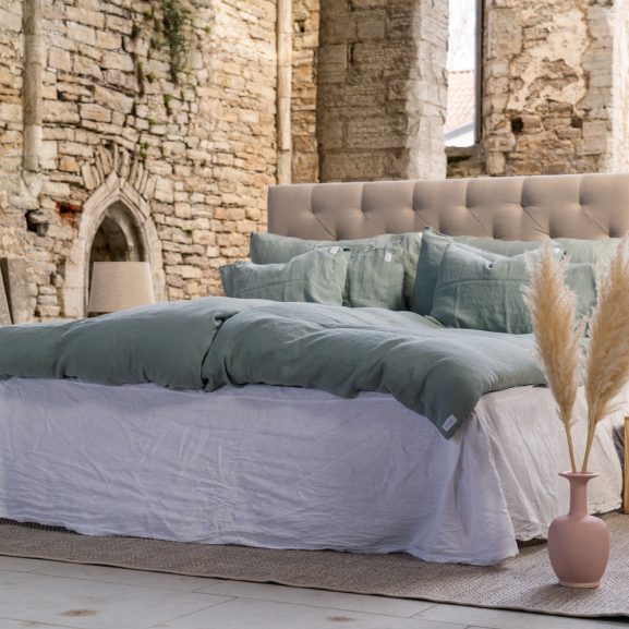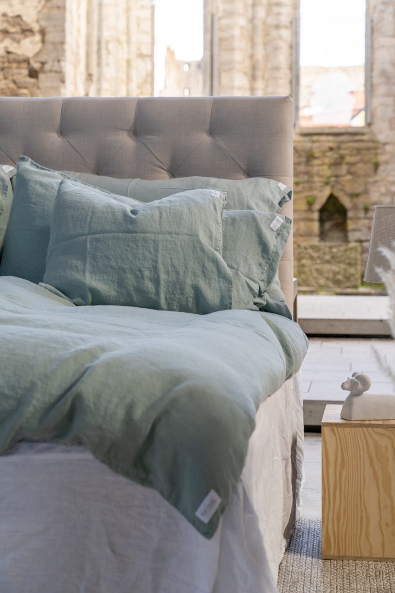 Njut av en god natts sömn i vårt påslakanset Frosty Green. Sängkläderna är gjorda av ett hundraprocentigt linnetyg som blivit tvättat. Mjuka, behagliga och alldeles underbara att krypa ner i. Sov sött!