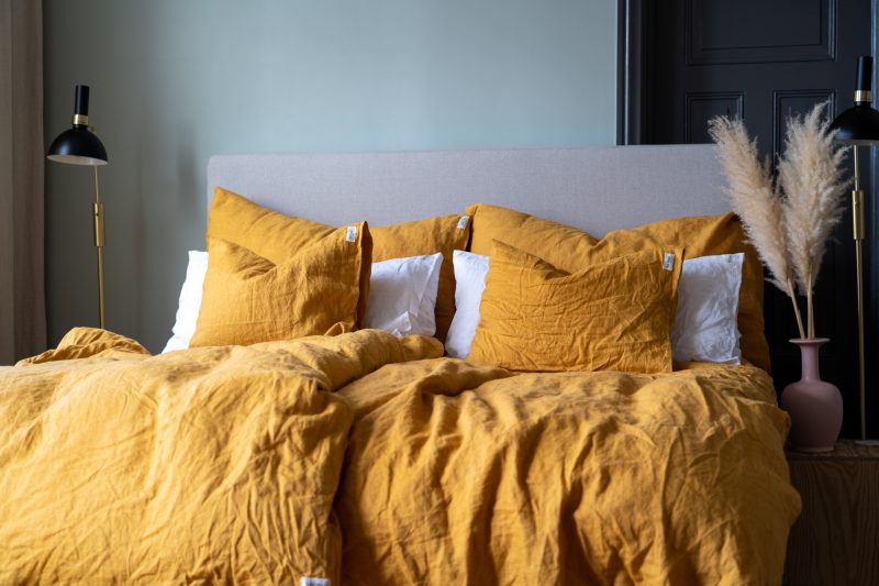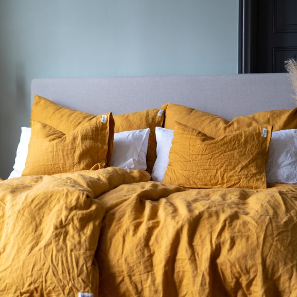 Innan jul köpte jag påslakan av linne i färgen Sunflower. Lakanen är verkligen så underbart vackra med sin djupt ockragula färgnyans. Lakanen är så mjuka och sköna att ligga insvept. Jag är så nöjd med att jag valde de gula påslakan ifrån Lin Living.