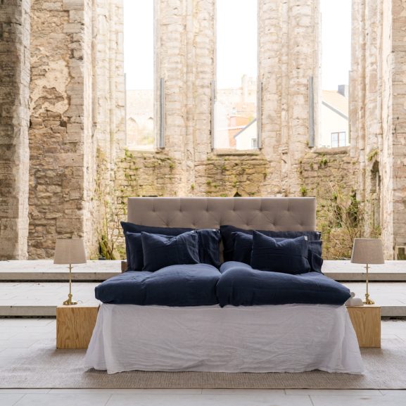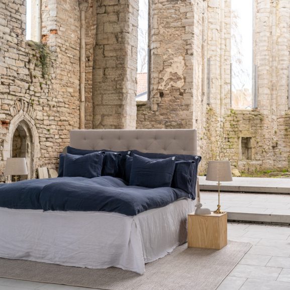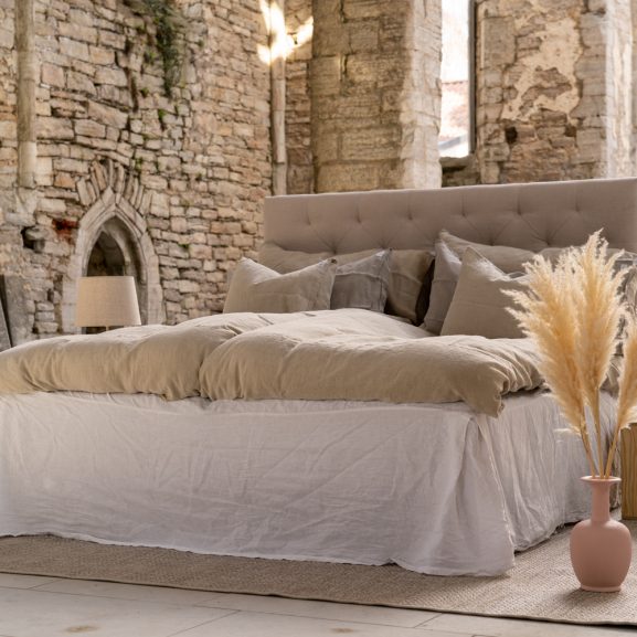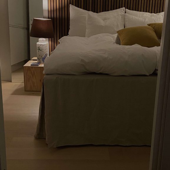 Ge ditt sovrum ett stilrent och harmoniskt intryck med en sängkappa i linnetyg. Sängkappan täcker din sängstomme och ger din bäddning en mjuk och ombonad känsla. Svårt att välja färg? Beställ tygprover här.
