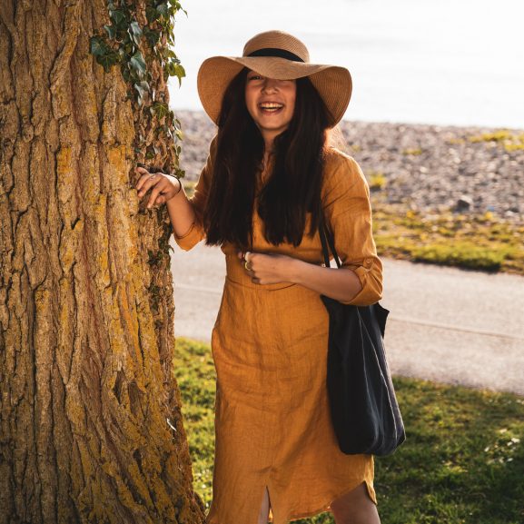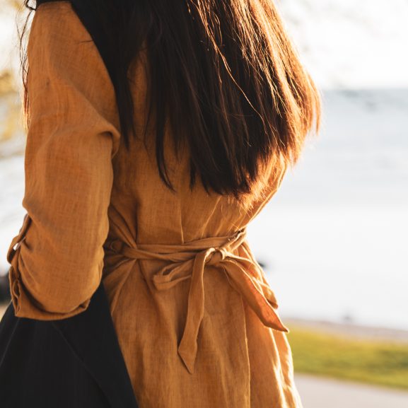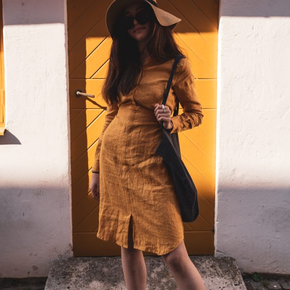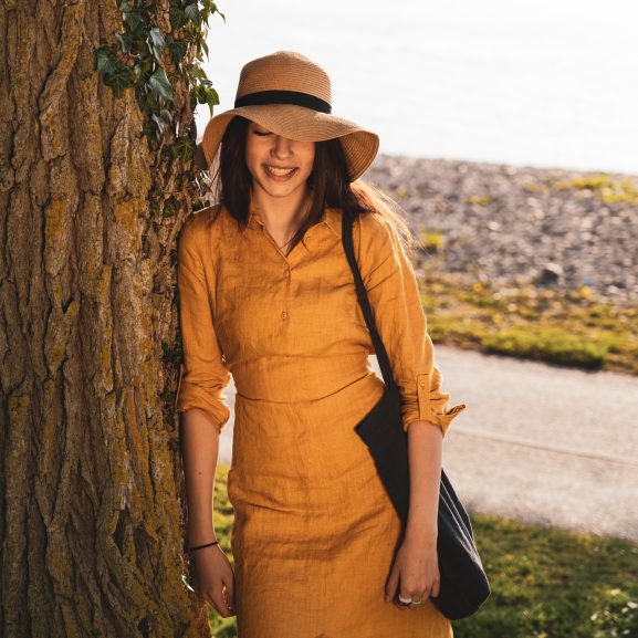 Lin Livings egendesignade skjortklänning är gjord av 100% linne. Designen är framtagen av vår grundare Hanna Jörnhammar på Gotland och klänningen är producerad i Estland. Linne har använts sedan urminnes tider och än idag finns det inga tecken på att materialet någonsin kommer att gå ur tiden. Tack vare dess fantastiska hållbarhet och slitstarka kvalité kan det användas i generationer. Lin är ett temperaturanpassande material som håller dig sval när det är varmt, samt varm när det är kyligt. Lin är även smuts- och dammavstötande vilket är mer hygieniskt mot din hud.